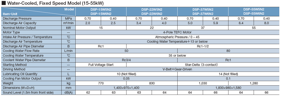 Bảng thông số kỹ thuật máy nén khí trục vít không dầu Hitachi